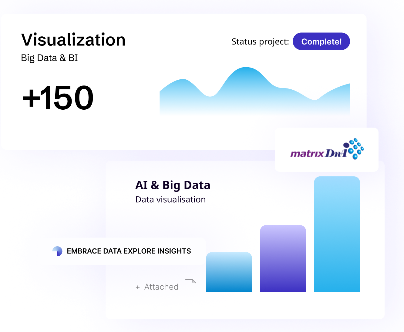 עם כ-400 מומחים ואנליסטים, אנו מציעים ללקוחותינו שירותים ופתרונות מקיפים בעולמות ה-Big Data, AI ו-BI לצד הטכנולוגיות המובילות בתחום וה- best practices שצברנו לאורך מאות פרויקטים. פעילותינו מתרכזת ב- 6 עולמות תוכן:AI, Big Data&Cloud, Business Analytics, Data Science Business Intelligence, Data Integration.